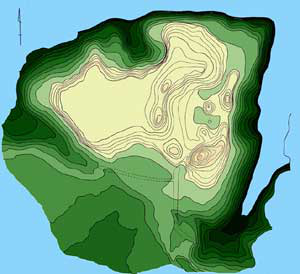 原地形の残存する東側の測量図に、昭和40年代作成の地形図、及び断片的に残る情報を加え、全体を復原した。