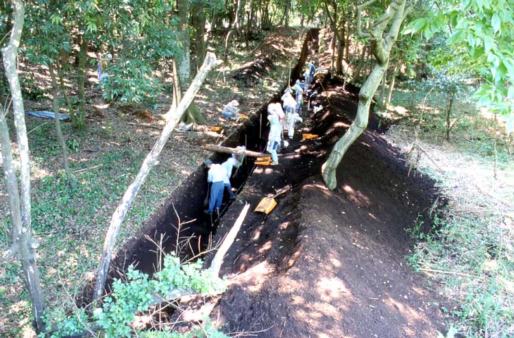 第4次調査では、盛土の環状構造と谷の埋め立て工事など、おおよその遺跡の外郭は見えてきたものの、なお盛土・窪地の詳細はこの後の調査に委ねられた。